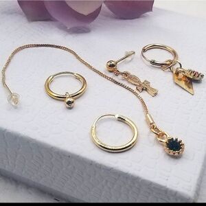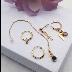 set of 5 individual Studd earing gold toned and hypoallergenic Asymmetrical.