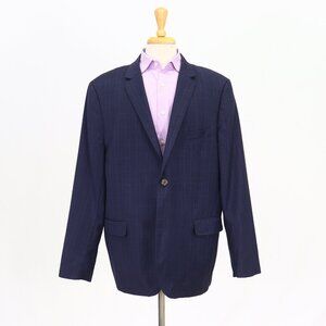 Indochino 48L Navy Blazer Sport Coat Jacket 2-Button Check T389