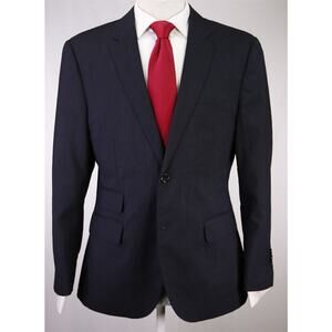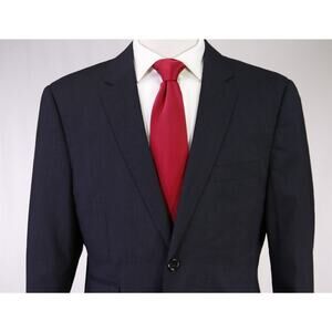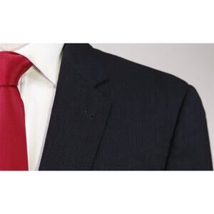 Indochino Black Blue Thin Striped 2-Btn Wool Slim Fit Suit 42S