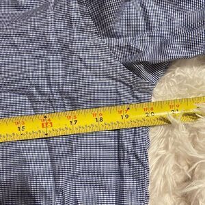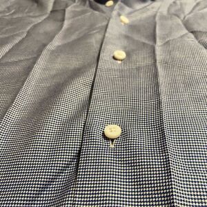 Indochino Men’s Farington Houndstooth Blue Button Up Shirt (No Size). Approximate measurements: pit to pit 20”, length from pit to bottom hem 16”. In great used condition. No stains or tears!