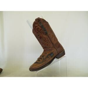 Indomables Brown Leather Inlay Cowboy Western Boots Mens Size 8 D