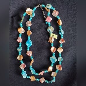 Indonesian Turquoise and Pink Shell Necklace NWT