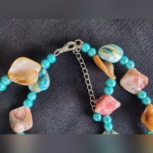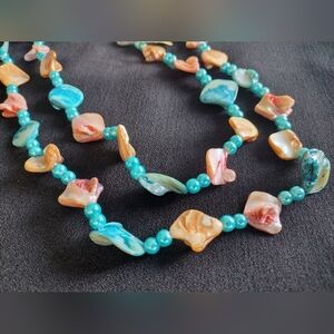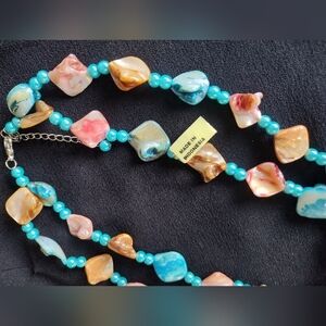 Indonesian turquoise and pink shell necklace. NWT, Measurements included in photos. This necklace is absolutely stunning, I am happy to answer any questions.