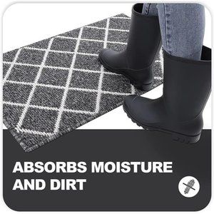 Indoor Door Mat, Non-Slip Absorbent Resist Dirt Entrance Rug, 20" x 32", Black