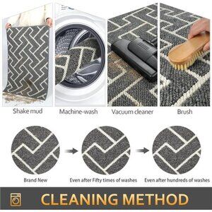 🧿EASY TO CLEAN: The unique rib fabric design removes dirt and mud from shoes easily. When your doormat gets dirty, first shake it off outdoors or over your garbage bins, then sweep with a broom or vacuum regularly or use a garden hose to rinse the mat outdoors. For deeper clean: machine washable, use water under 86 (℉) / 30 (℃). Do not iron. Do not bleach. Do not expose it to the sun for a long time.
