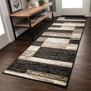 Indoor Runner Rug,Jute Backed,Modern Geometric Patchwork Floor Decor for Bedroom