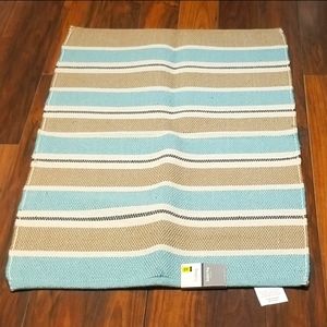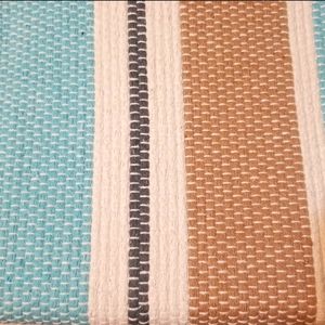 Indoor Scatter Rug Teal, cream, tan, and dark grey 27in x 45in (68.5cm x 114cm) Colors may be slightly different than pictured due to lighting.