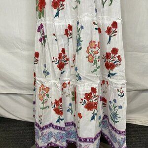 Indu Nour Wild Flower Cotton Midi Skirt • Size L • White/Multicolor