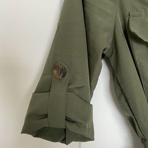 Features:Round neck, Airy & Light, Elastic Cinched waist, Button down, Buttons and strap on arm, Tie-able waist, Round Hem