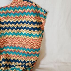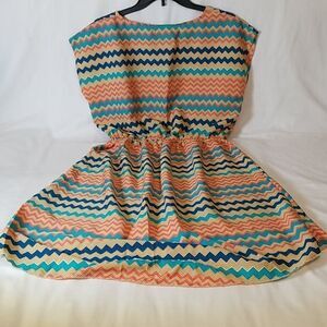 Lightweight hi-low sleeveless dress with a catchy geometric pattern! Wear it with a pair of tan sandals and you have created the perfect hot summer day outfit!
