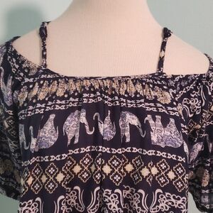Sweet little summer blouse with elephant print. Spegett straps. Off the shoulder sleeves.
