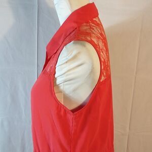 This coral colored lace sleeveless Indulge high low midi dress is a size Large with a pit to pit measuring 19" and a front length of 35". It has beautiful floral lace. Elastic waistband and lined. in excellent condition. All offers are welcome.