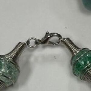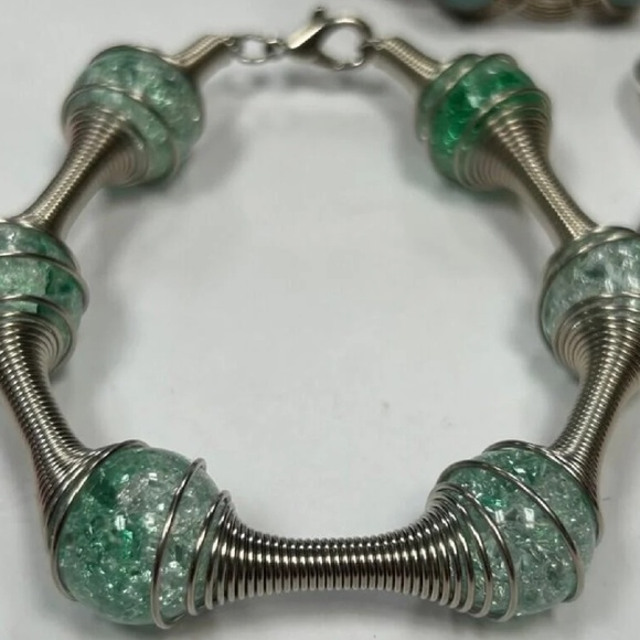 Industrial Design Bracelet Wire Springs & Clear and Green Glass Balls