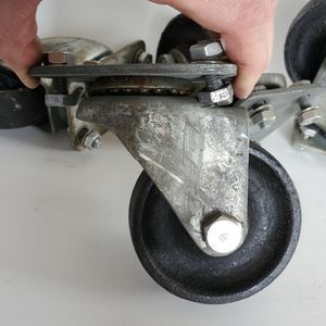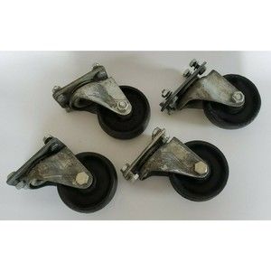 Set of 4 heavy duty wheels that were purchased 25-30 yrs. ago. Solid and weighing 3.5lbs ea . with ball bearing construction. Note that some may need to be greased, as they have been sitting.
