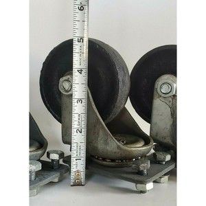 Vintage 3.5" Industrial Factory Cast Iron Swivel Castors complete w/ mounting Bolts, Set of 4 Heavy Duty Wheels