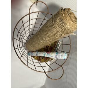 Industrial Style Round Copper Tone Metal Wire Storage Basket w/ Handles