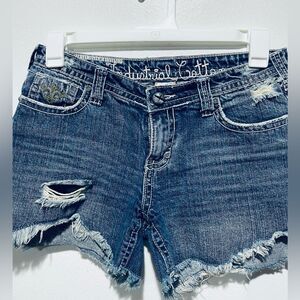 Industrial cotton denim cutoff shorts distress blue western casual women 7