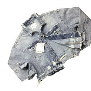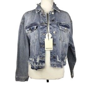 Industries Jeans Jacket Women's Size Large Blue Denim Long Sleeve Distressed