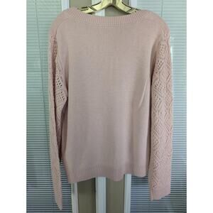 Industry Fashion V Neck Crochet Cutout Knitted Pullover Pink Sweater Size XL NWT