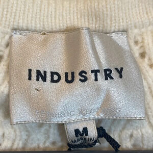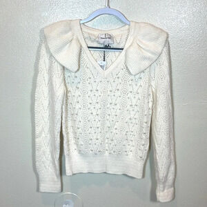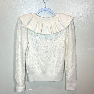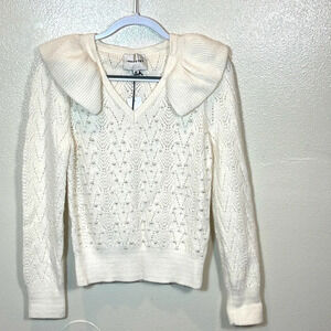 Industry Pearl Long Sleeve Ruffle Pointelle V-Neck Cable Pullover Sweater size M