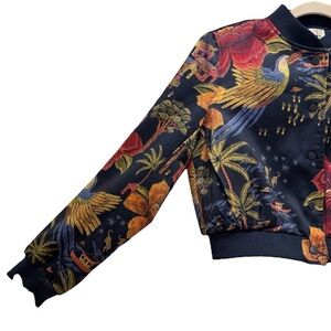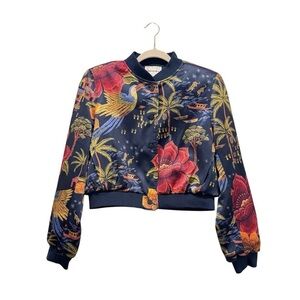 Industry Republic Crop Bomber Jacket Floral Farm Rio Vibe Jungle Tropical Size M
