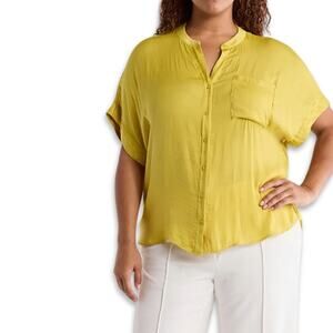 Industry Republic Top Airflow Fabric Button Up Short Sleeves Yellow Green M NWT