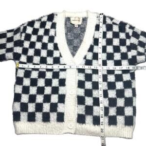 Pre-owned women’s Industry black white checkered fluffy knit button up cardigan.