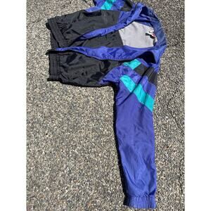 Step back in time with this awesome vintage 90s Inertia windbreaker! This lightweight jacket features a vibrant purple and teal color scheme that screams retro. Perfect for adding a pop of color to your wardrobe or layering on a cool day.