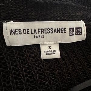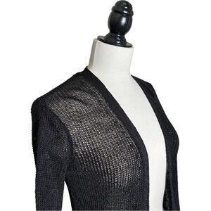 Ines De la Fressange Paris Uni Glo Linen Blend Open Front Black Cardigan S