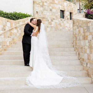 This dress brought me so much joy on my wedding day. Nothing would make me happier than to see her spark joy for someone else. Please reach out with any questions!