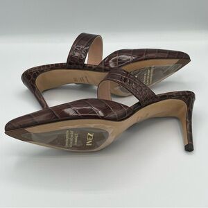 Inez Mora Mule in Cocoa Croco Pointed Toe Embossed Leather Slip-On Shoes