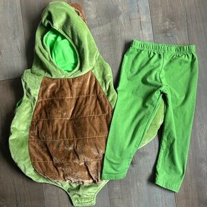 Fun dinosaur costume for kids. Bright green with brown accents. Perfect for Halloween.