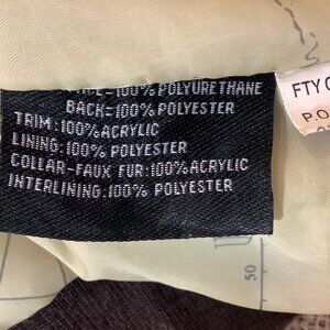 Jacket is in good condition, clean, I find no visible stains or flaws. Zipper closure, zipper closure and snap closure pocket each side front. Warm stretch ribbing at bottom of jacket and cuffs. Collar is removable, attached with buttons. See photos for details.