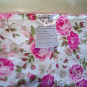 Really pretty car seat cover with straps to put on handle, snaps to be able to see inside easily. Pink minky fabric on the back.