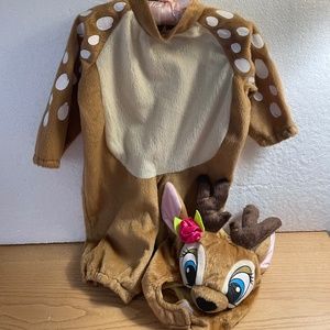 Infant Baby Deer Halloween Costume 0 -6 Months Doe Bambi One Piece w Bonnet Mask