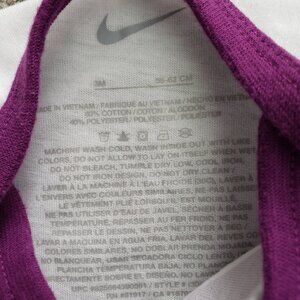 Infant Baby NIKE Outfit Bodysuit White with Purple Trim. 3M 3 Months.