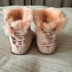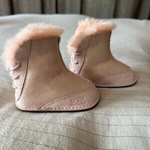 Infant Baby UGG Ballet Pink Bootie Shearling Sheepskin Leather Comfy Warm Small