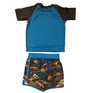 This listing is for an Infant Boy's 18 Months Rash Guard and Swim Trunks Set Wonder Nation Dinosaurs.
