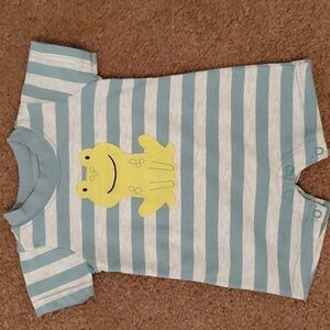 Carter's green and grey stripes with yellow frog. Gently used in good condition.
