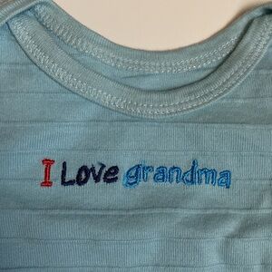 Boys six month light blue short sleeve onesie that says I love grandma koala baby brand
