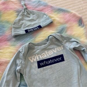 Infant Diesel One Piece “Whatever” Long Sleeve with Matching Cap