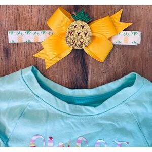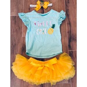 Comes with yellow tutu that has built in underwear and pineapple headband.