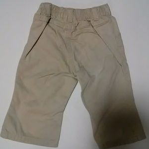 Infant Girl's 2-pc Bundle. Salmon-colored short-sleeved onesie has a flower motif on chest. Tiny crocheted lace around neckline. 3-snap bottom closure. Pull-on khaki pants have front pockets, elasticized waist in back, & beltloops. Both pieces excellent condition & Sz 9mos. Onesie from Carter's; pants from Cherokee.