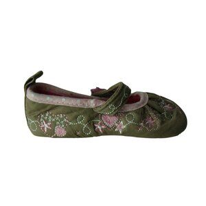 Infant Girls Mary Jane Shoes Size 1 Embroidered Pink & Green Floral Design With