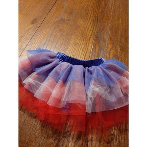 Infant Girls Size 70 6-12 Month Red White Blue Tulle Layered Tutu Skirt Costume