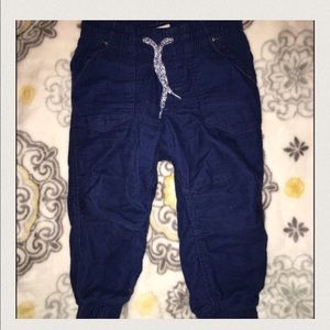 2 H&M Lined pants, thick material perfect for cold weather. like new free of stains and odor. Size 9-12m color blue and olive green. 1 H&M red corduroy pant size 9-12m like new.
