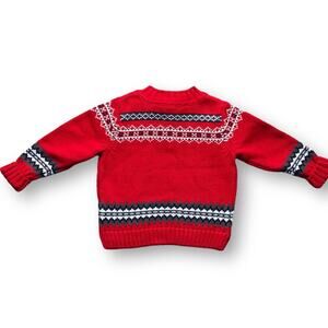 Infant Lands End Sweater Red Fair Isle QuarterZip Mock Neck Knit Size 24 Months