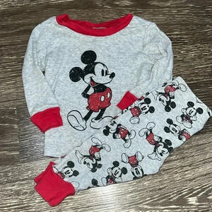 Infant Mickey Mouse long sleeve pj set. Included a long-sleeved t-shirt and pair of stretchy pants. Size 9-12 months.