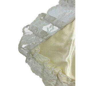 Good: the cross has broken off of the globe, the lace is a bit discolored due to age, the base has signs of wear