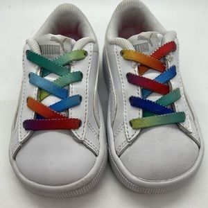 Infant Puma slip on low tops with stretch laces. These are in good condition as shown in detailed pictures. Super cute and ready to ship! You don’t have to worry about laces…these slip on! They grow so fast…why buy new?